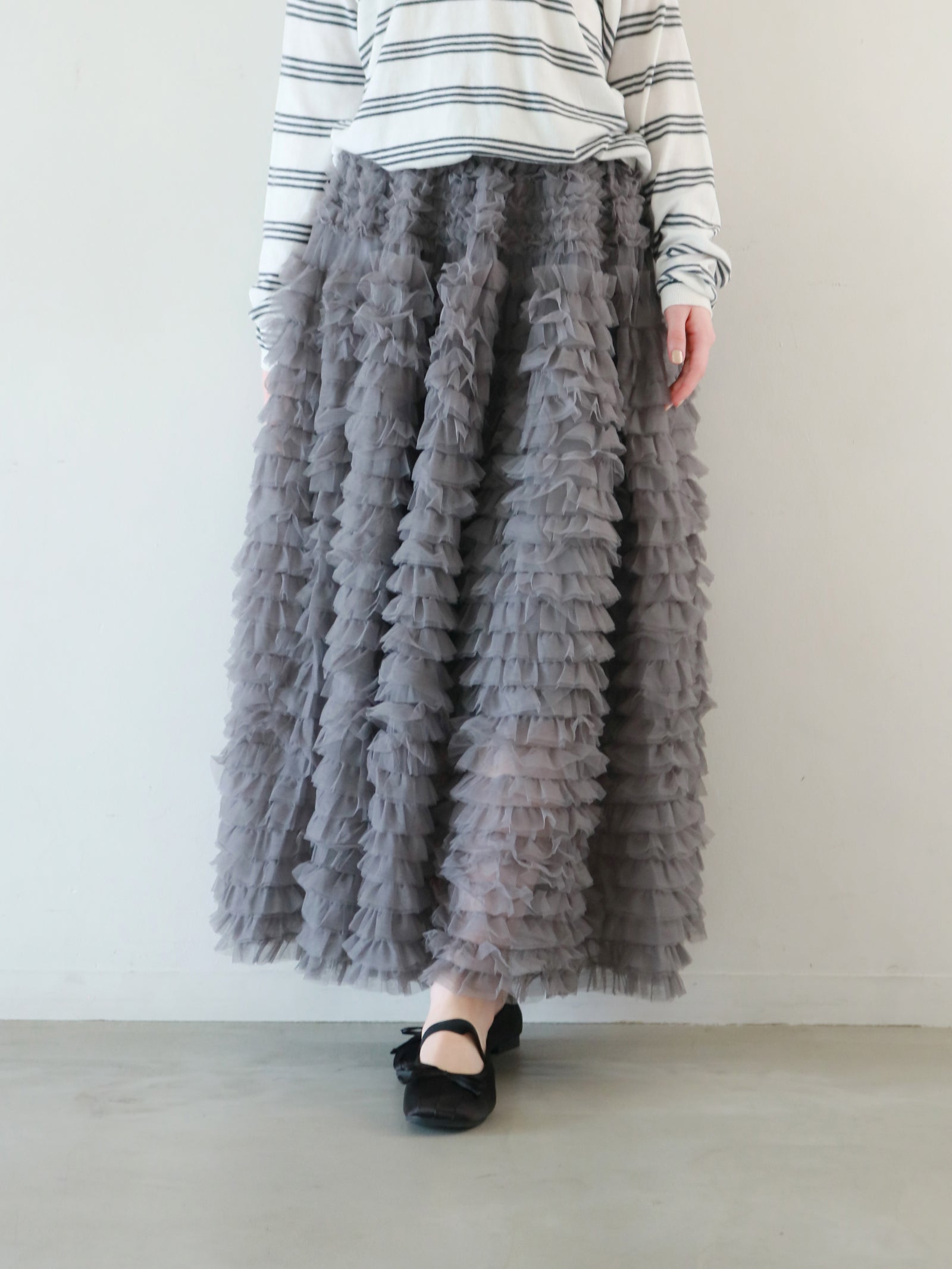 視線を惹きつけるチュールが、スタイリングの主役になる